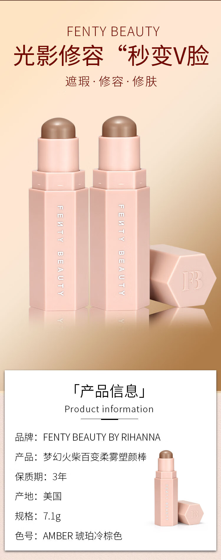 FENTY BEAUTYFenty Beauty蕾哈娜修容棒鼻影阴影侧影高光Amber立体哑光修容膏 Amber经典版琥珀冷棕色